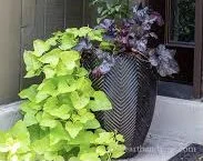A planter placed 2-3 feet above ground, allows for the potato vine to hang down, suggesting continual growth of flora and adding color and charm when all else seems to be drying up. The leaves are not much bothered by pests but the roots can be attacked by insects which is sometimes difficult to control. For this reason, I prefer my plants in containers/pots, raised flower beds and enjoy the waterfall effect from a hanging basket or tall above ground planter.